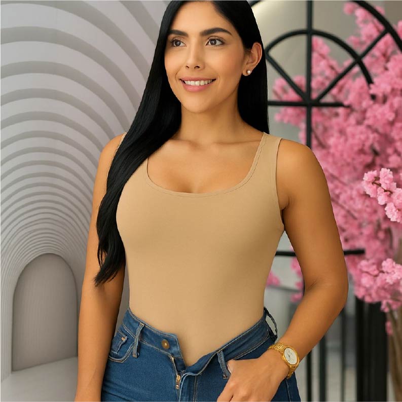 Este body tipo licra se adapta a tu cuerpo como una segunda piel, ofrece control ligero en abdomen y realza tu silueta sin incomodar.