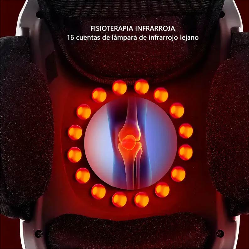 Este masajeador combina vibración, calor, compresión de aire y terapia infrarroja para aliviar molestias de artritis, lesiones deportivas, rigidez y cansancio muscular.